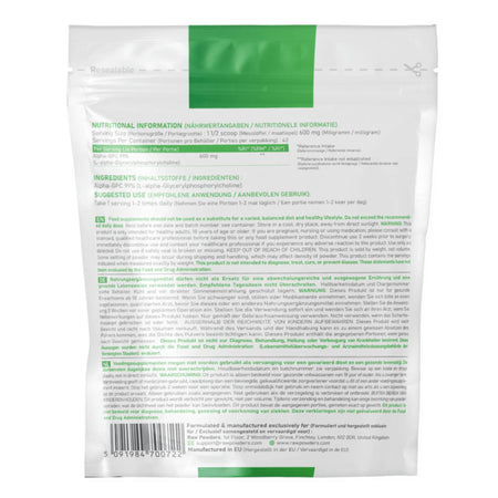 Alpha-GPC ist ein Cholin in einer einzigartigen Form, das im gesamten Körper verwendet wird.