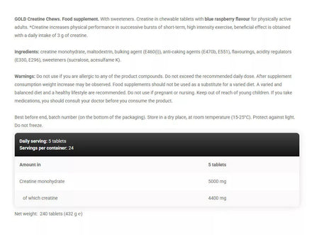 Gold Line Creatine Chews (240 Tablets)