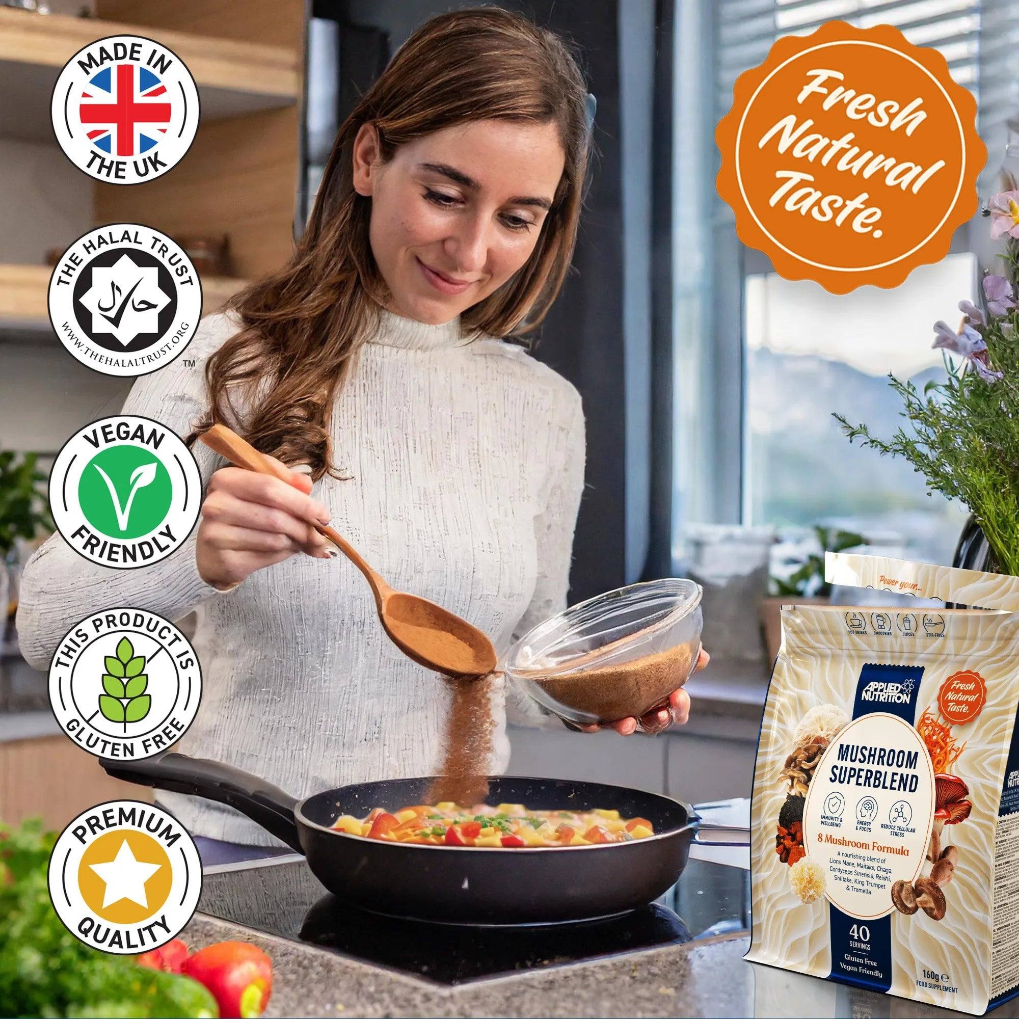An organic, synergistic and powerful Blend of 8 different mushrooms including Lions Mane, Maitake, Chaga, Cordyceps Sinensis, Reishi, Shiitake, King Trumpet & Tremella designed for overall health.
